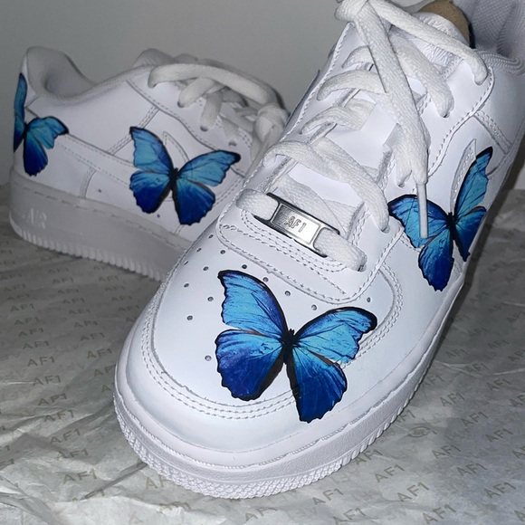 Nike Airforce Af1 Shoes Blue Butterfly Af1 Custom Nike Air Force Blue Butterfly af1 custom butterfly