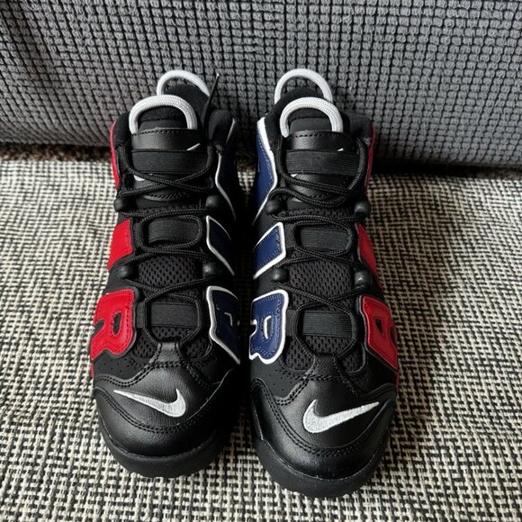 NIKE AIR MORE UPTEMPO (GS) BLACK-UNIVERSITY RED SZ 6Y-WOMENS SZ 7.5 nike air more uptempo black womens