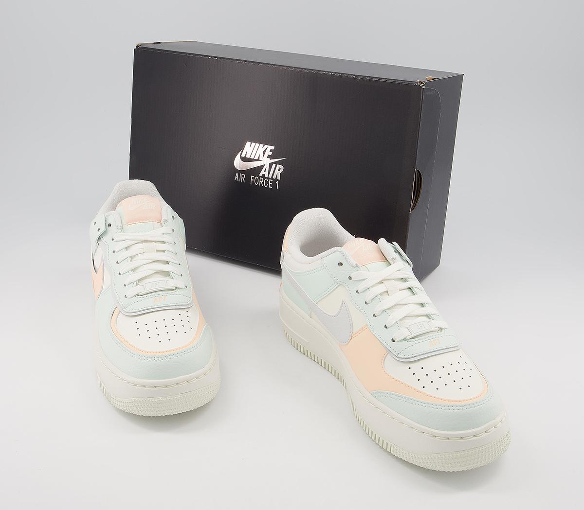 Nike Air Force 1 Shadow Trainers Sail Barely Green Crimson Tint - Women's Trainers nike shadow barely green and crimson tint
