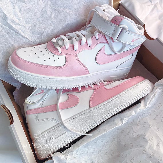 Custom Nike Air Force 1 Mid Sneakers - Coral Pastel Pink - Etsy nike high tops pink swoosh