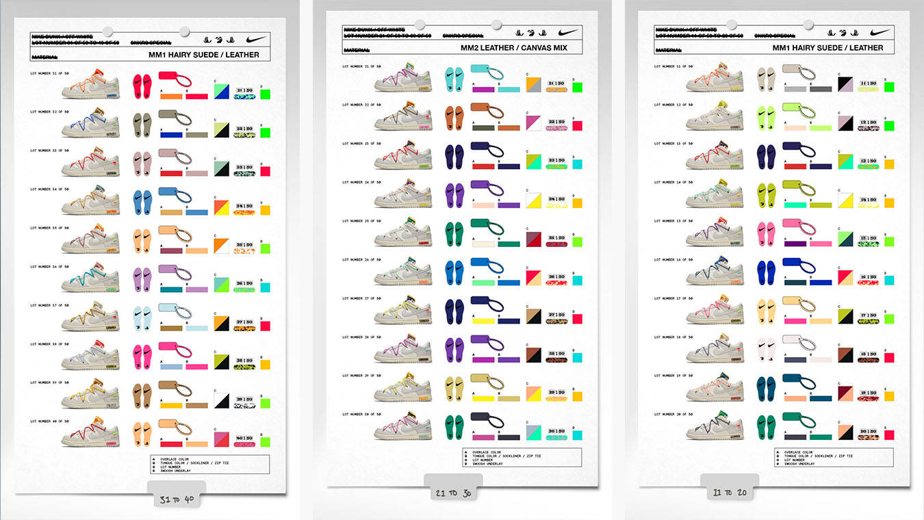 Images of All 50 Off-White x Nike Dunk Lows Have Surfaced off white dunk 50 list
