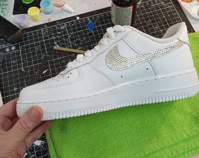 Custom Nike Air Force 1s With Rhinestone Swoosh, Crystal Nike Air Forces, Hand Placed, Blinged rhinestone air forces