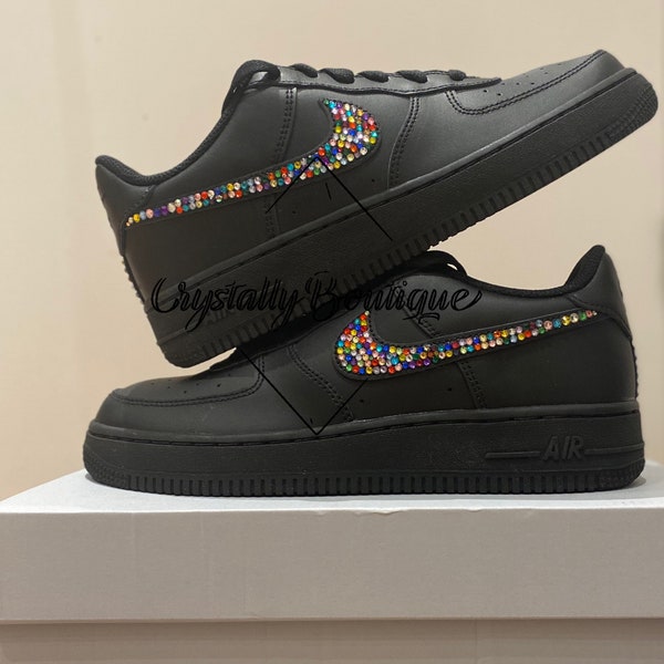 Rhinestone Black Air Force Ones - Etsy rhinestone air forces