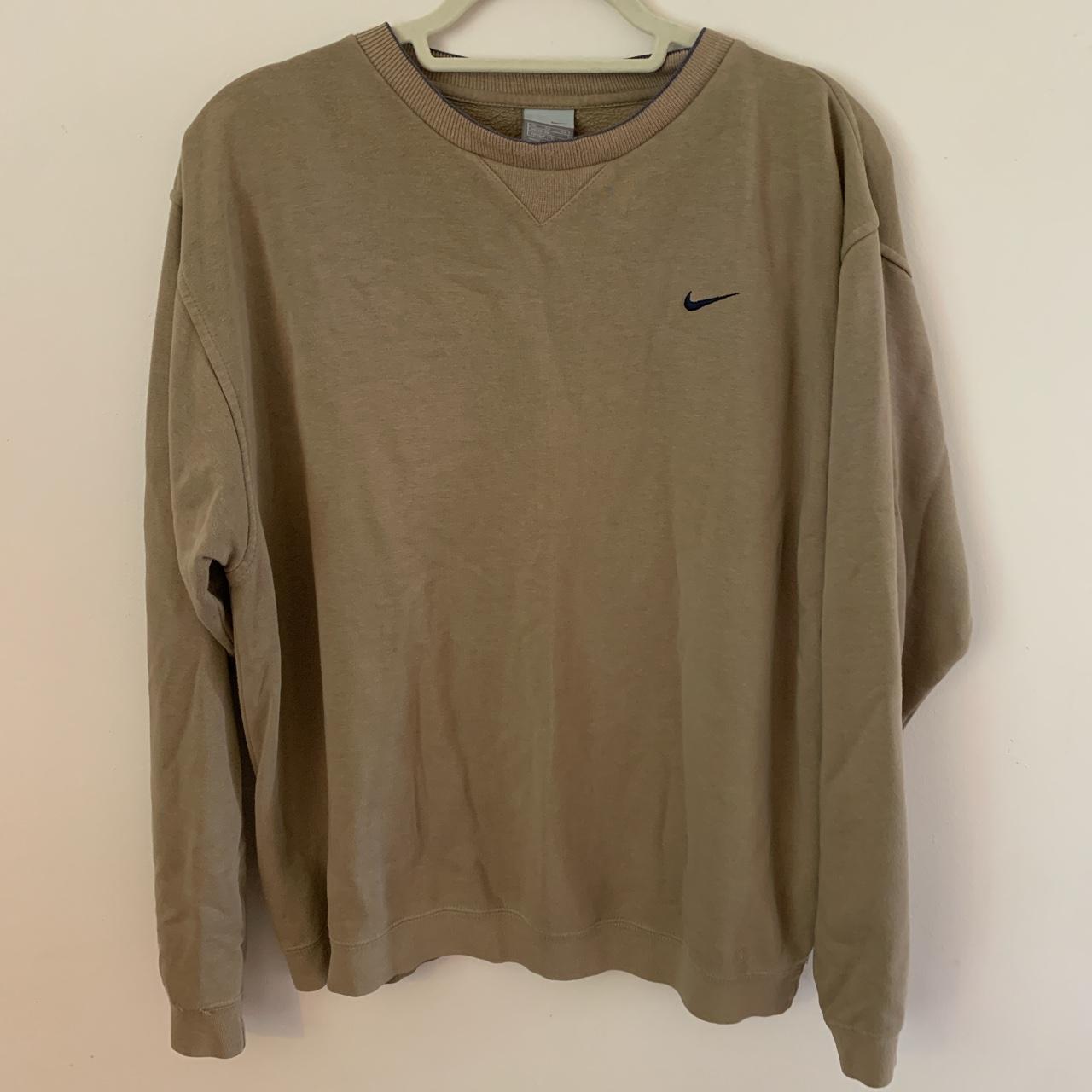 Nike light brown jumper with navy tick Size XL but... | Depop light brown nike jumper