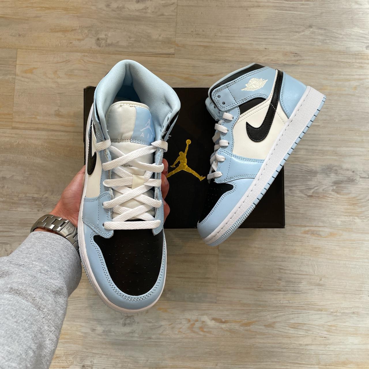 Jordan Women's White and Blue Trainers | Depop womens jordans white and blue